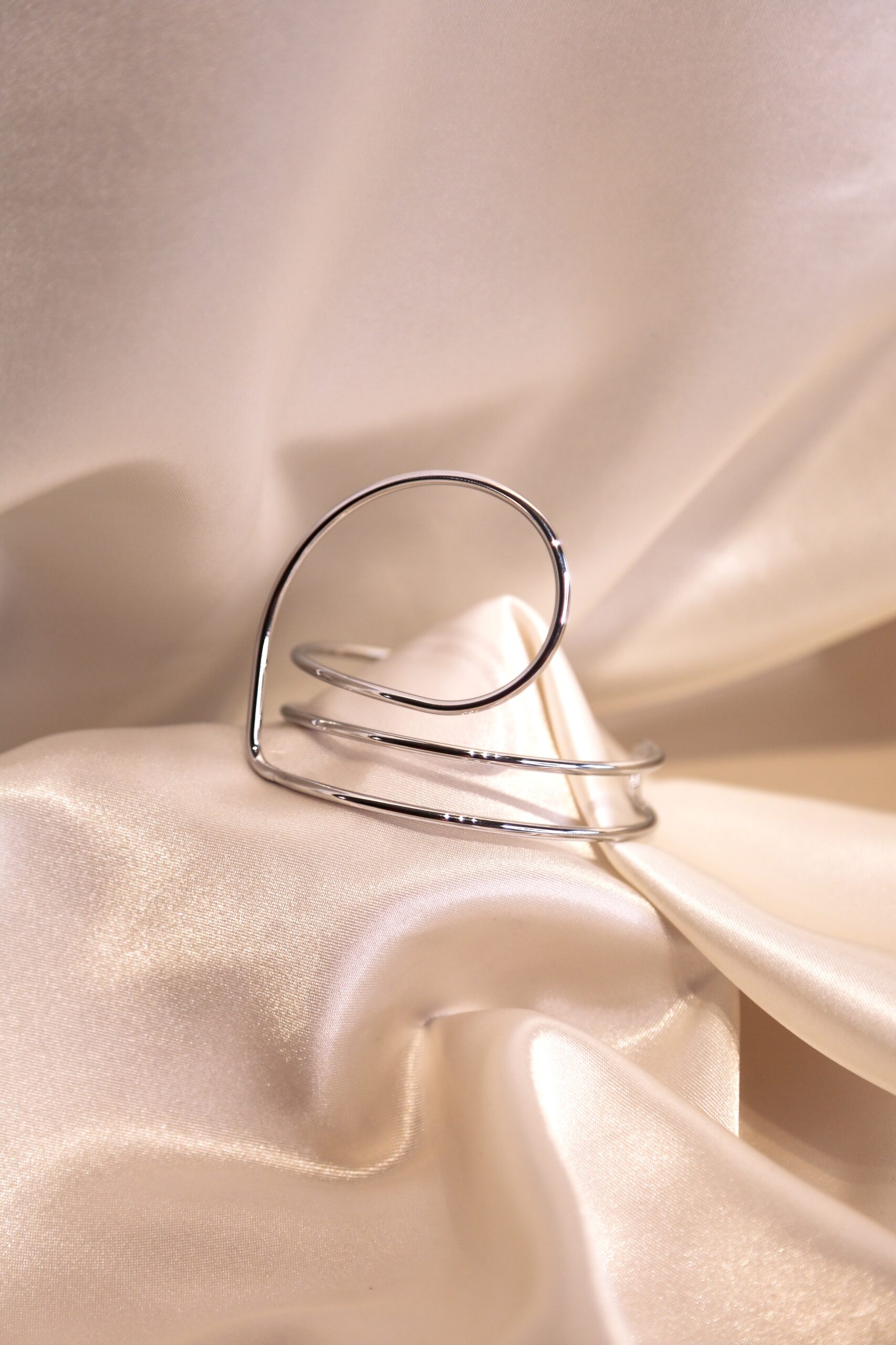 Ispirato al movimento fluido della linea libera, questo bracciale interpreta l’asimmetria come espressione di equilibrio moderno. In acciaio inossidabile ed anallergico. Nichel free.